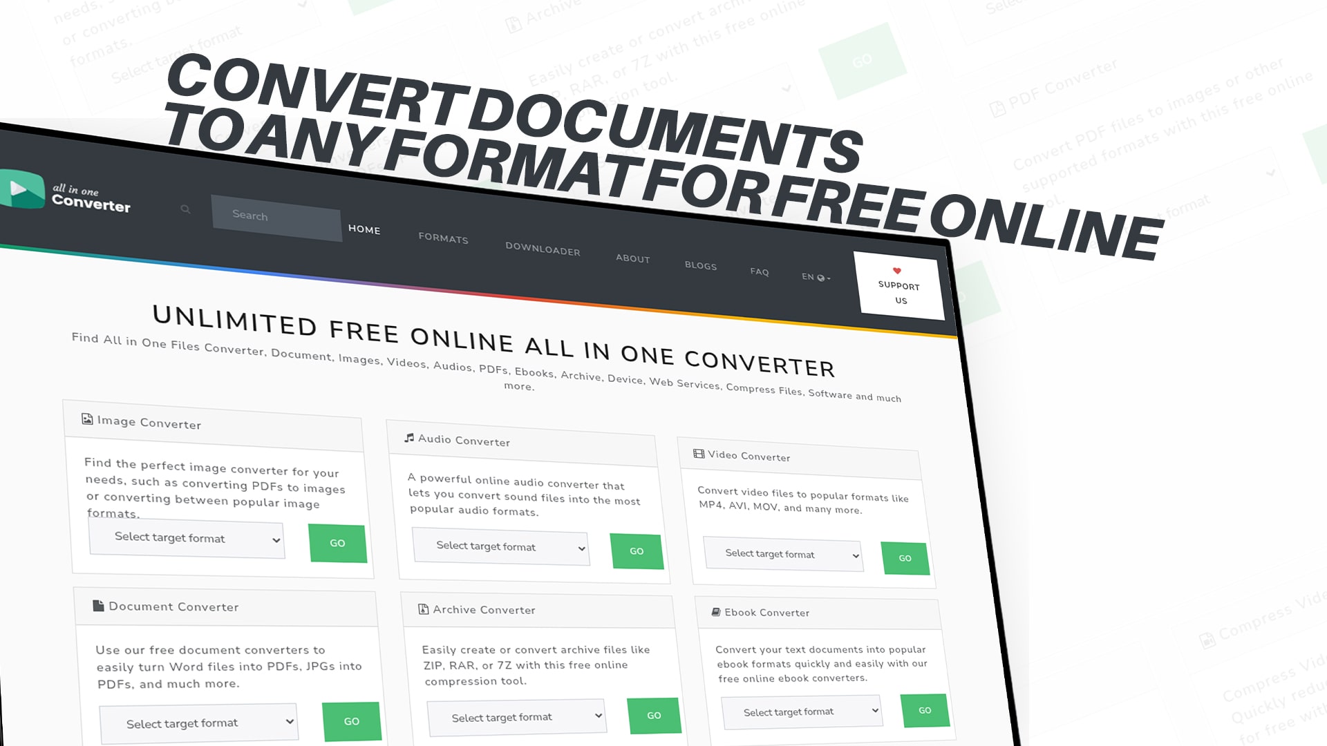 Convert documents, images, audio, videos, PDFs, eBooks, and more for free online. Fast, easy, and se